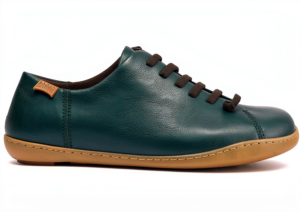 These Camper mens sneakers are crafted with high-quality materials, including 100% cow leather uppers for durability and a soft feel. The inner lining combines 63% pigskin and 37% fabric made from 100% recycled polyester, ensuring breathability and comfort. The sole is constructed from 80% compact TPU and 20% recycled compact TPU, offering excellent traction and resilience. Available in sizes from 6.5 to 13 and colors like Dark Green, Dark Gray, and Medium Gray, these shoes meet various style needs while maintaining a sleek design.